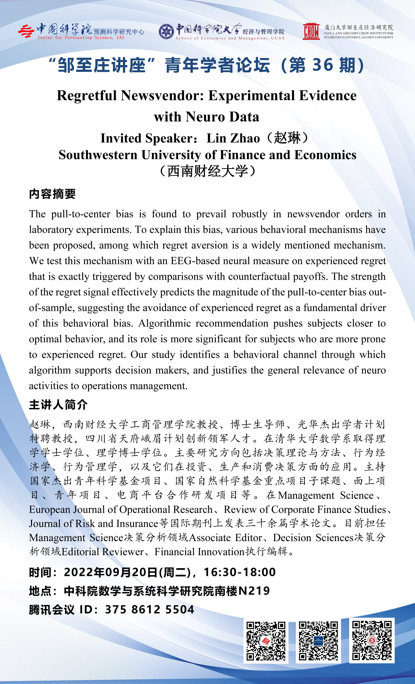 【2022.09.20-09.20 北京&腾讯会议】 “邹至庄讲座”青年学者论坛(第36期)