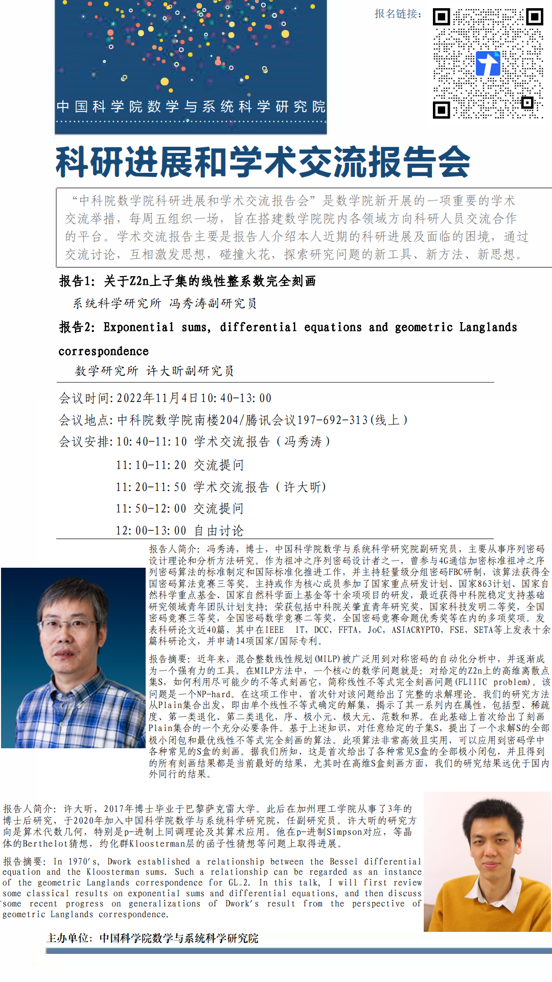 【2022.11.04-11.04 北京&腾讯会议】 数学院科研进展和学术交流报告会(第十一期)