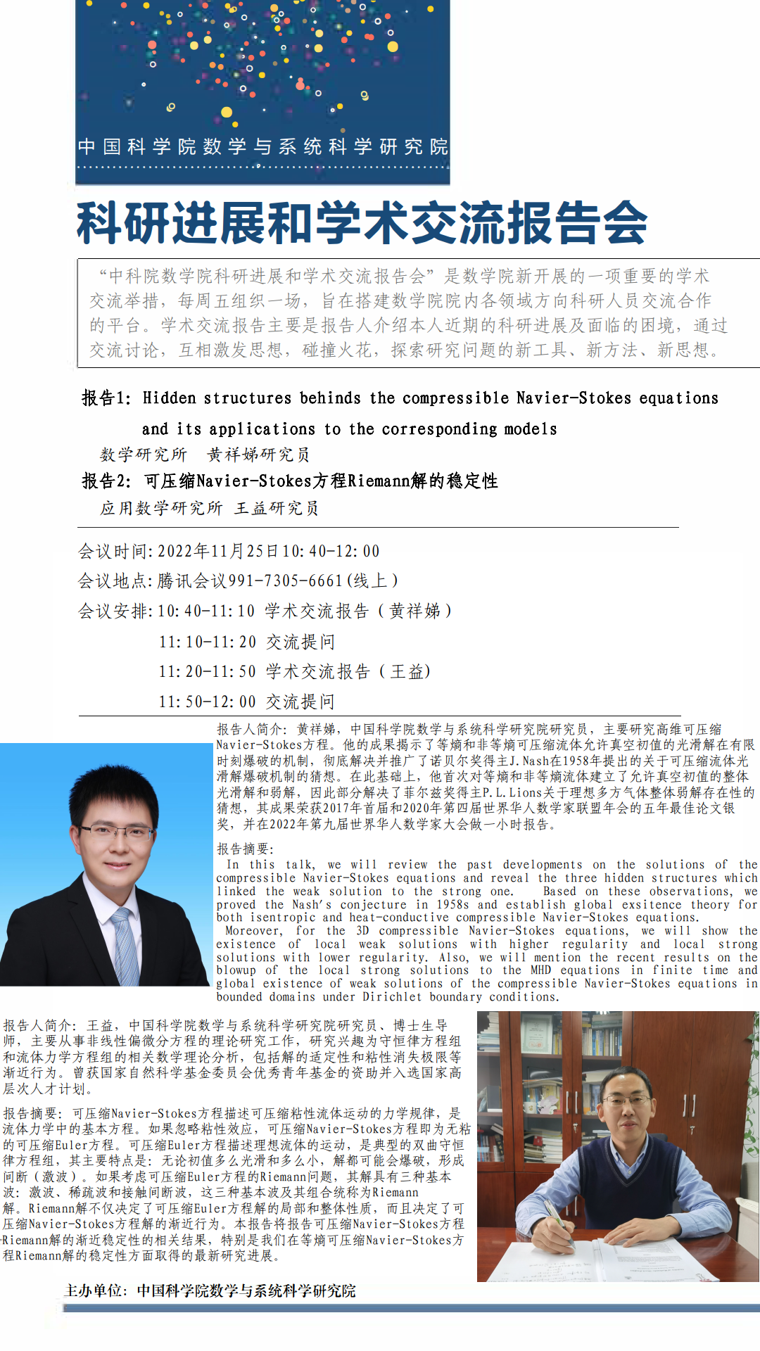 【2022.11.25-11.25 腾讯会议】 数学院科研进展和学术交流报告会(第十四期)
