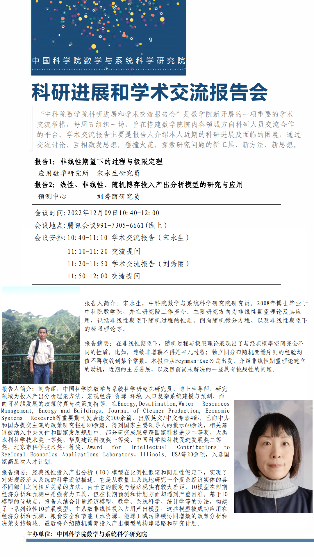 【2022.12.09-12.09 腾讯会议】 数学院科研进展和学术交流报告会(第十六期)