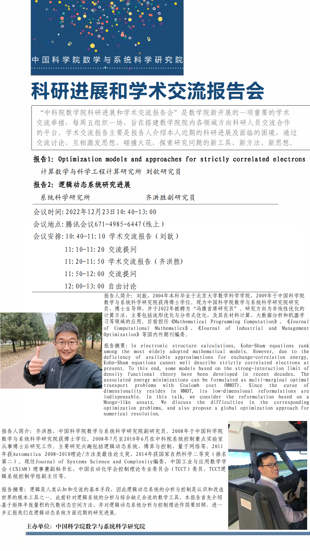 【2022.12.23-12.23 腾讯会议】 数学院科研进展和学术交流报告会(第十八期)