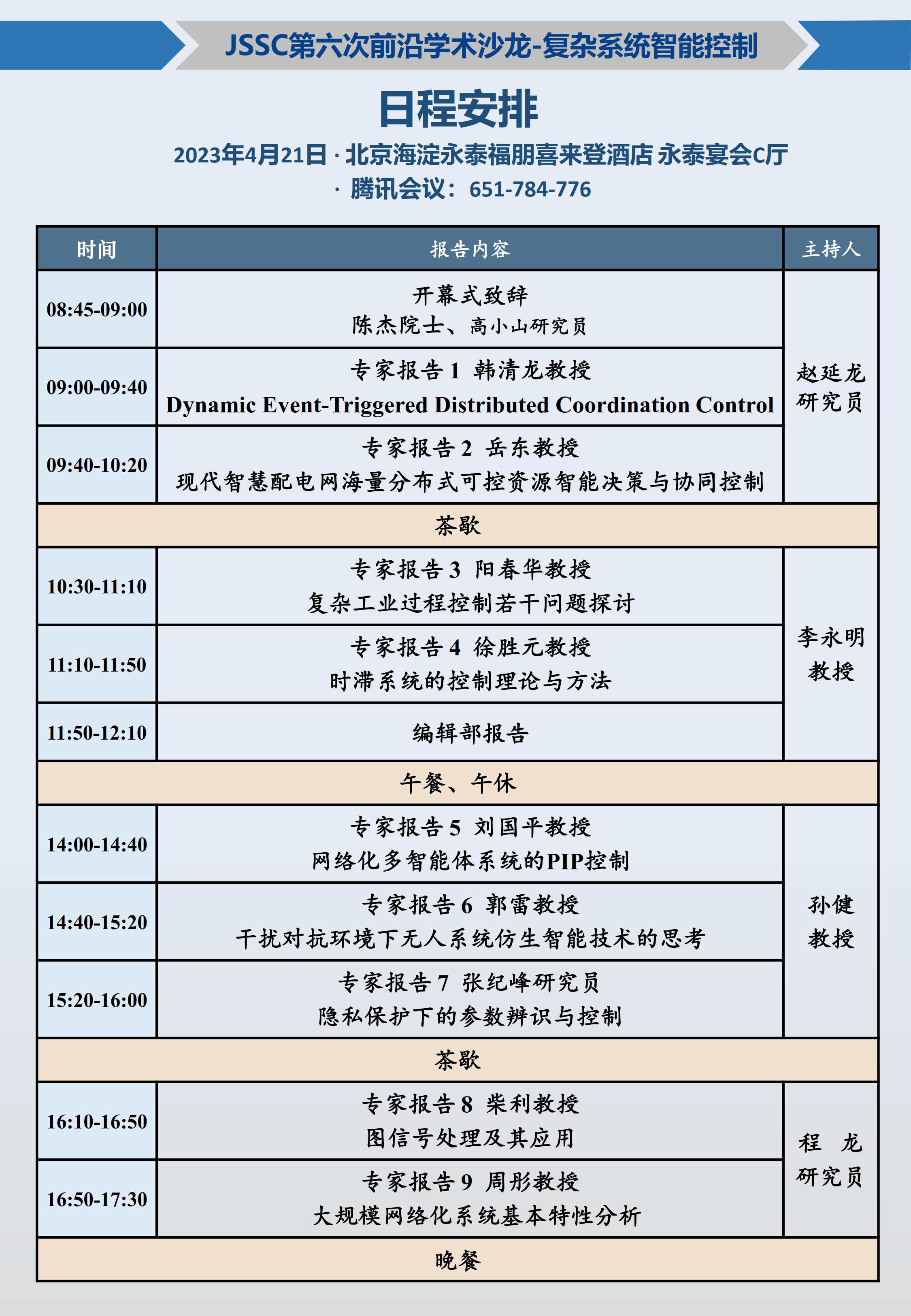 【2023.04.21-04.21 北京&腾讯会议】JSSC前沿学术沙龙-复杂系统智能控制