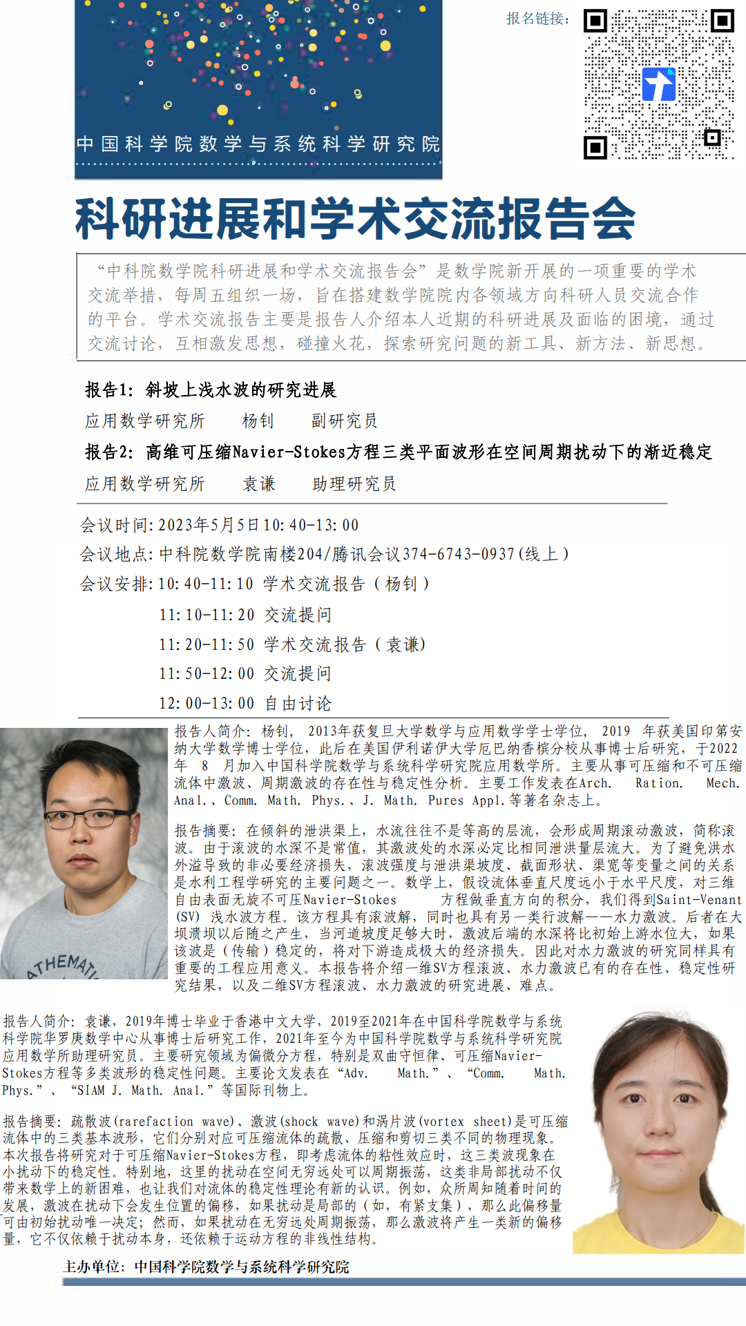 【2023.05.05-05.05 北京&腾讯会议】 数学院科研进展和学术交流报告会(第三十二期)