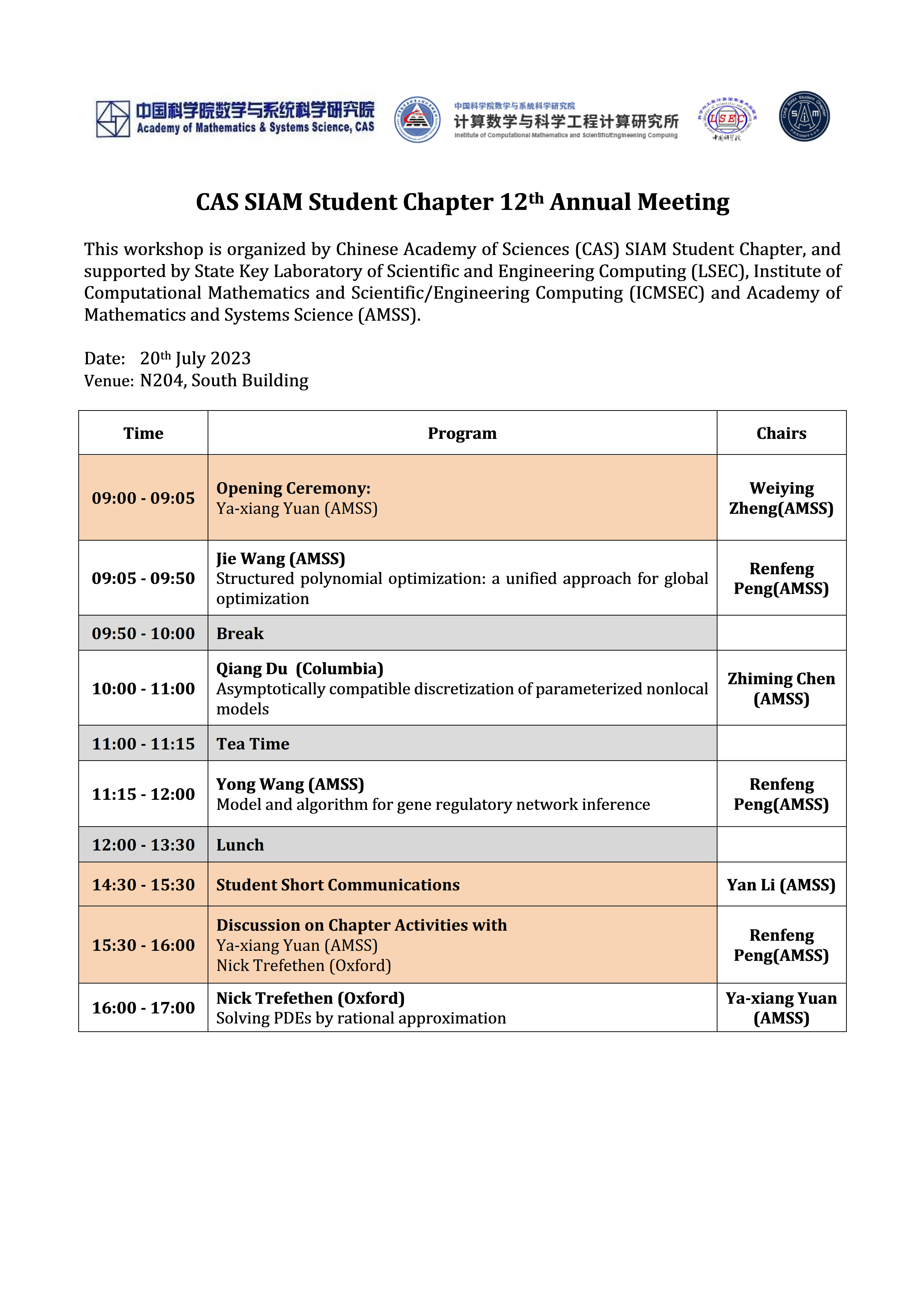 【2023.07.20-07.20 北京】CAS SIAM Student Chapters 12th Annual Meeting