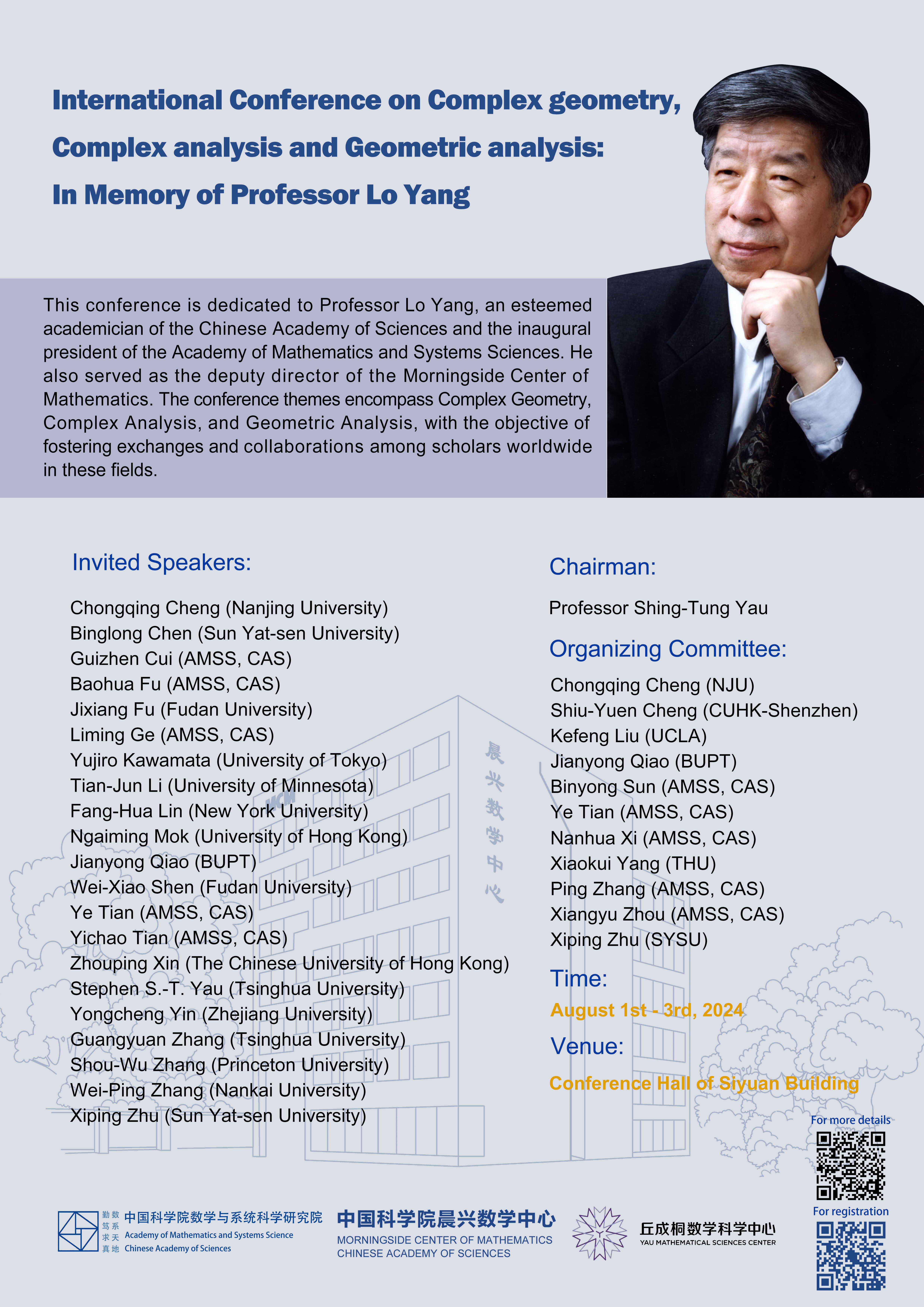 【2024.08.01-08.03 北京】复几何、复分析与几何分析国际会议:纪念杨乐教授