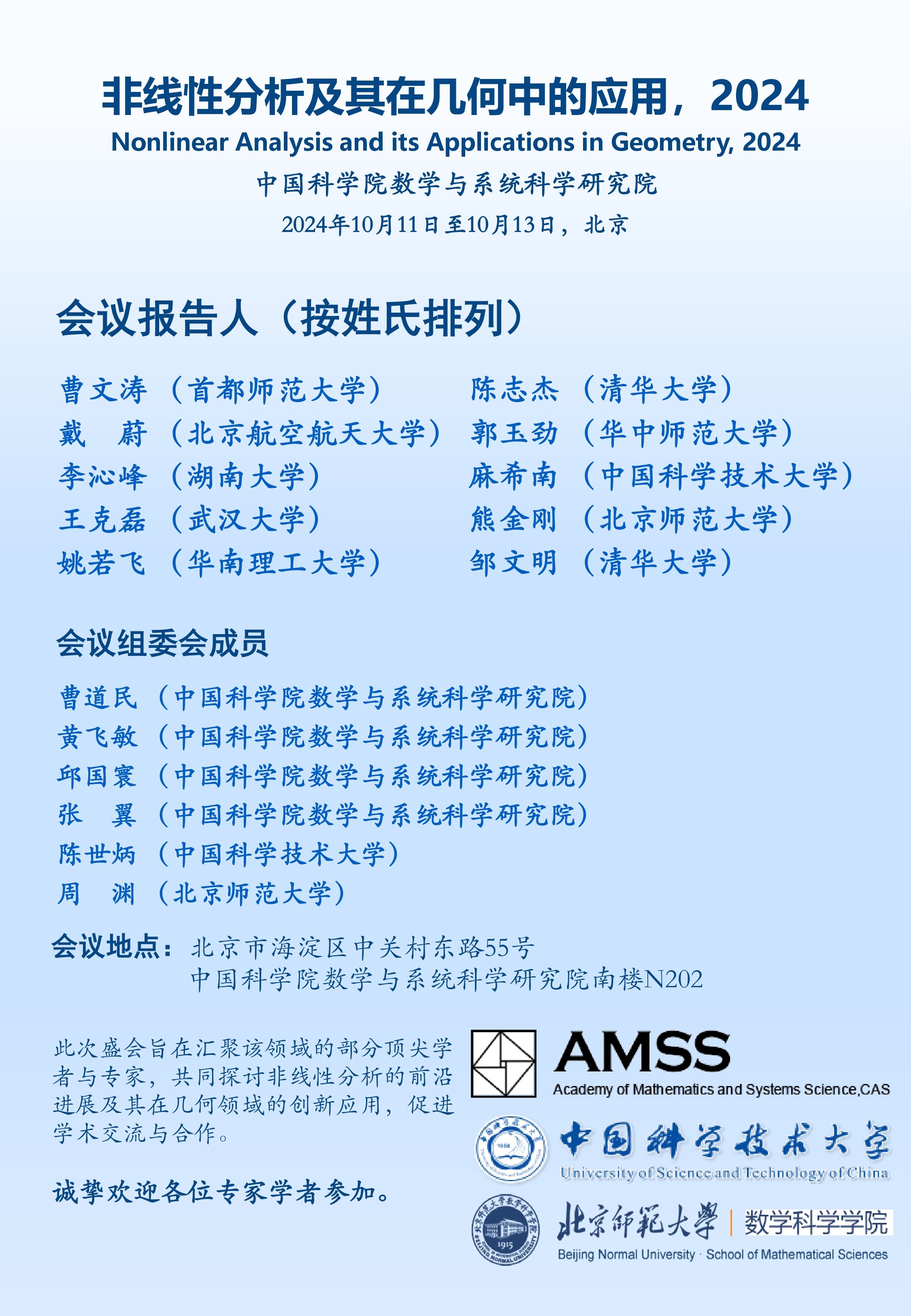【2024.10.11-10.13 北京】非线性分析及其在几何中的应用