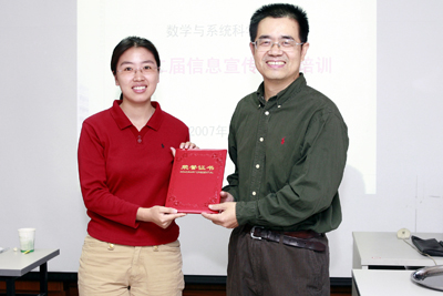 会上,我院郭雷院长、王跃飞书记为过去一年中工作突出的优秀信息宣传员颁发了证书,他们分别是“丰产奖”获得者魏敏、申玫玫;“文采奖”获得者郭小华、刘歆;以及“优秀奖”获得者常金玲、关华、李春英、翟小云。郭雷院长对获奖者表示祝贺,对所有信息宣传员的努力工作表示感谢,他预祝培训圆满成功,并对信息宣传工作提出了更高要求:“希望信息宣传工作要为我院的创新发展与和谐发展贡献更大力量”。