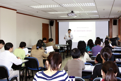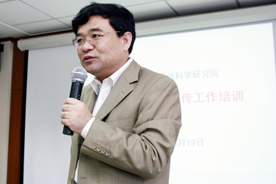 本次培训邀请了中科院网站总编李存富编辑为大家讲解“中国科学院网站新闻采写规范”。李存富总编以丰富翔实的例子,生动有趣的分析,向大家讲解了科研单位新闻写作的知识和技巧,特别是新闻标题的撰写,对信息宣传员们的实际工作有很大的帮助和启发。