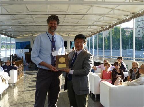 6月3日, 国际信息技术与定量管理学会在俄罗斯莫斯科公布了2014年Jr. Walter Scott奖的获奖者名单, 我院汪寿阳研究员由于在信息技术与定量管理领域的杰出贡献而获得该奖。受Jr. Walter Scott的委托,Peter先生代表他向汪寿阳颁发了奖牌和奖金。