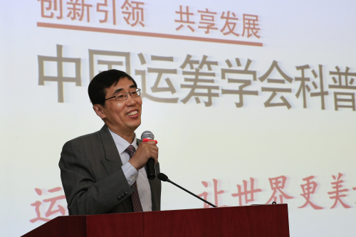 中国运筹学会2016科普日暨运筹学科普工作会议于2016年5月13日在我院204报告厅举行。参加会议的领导和嘉宾有中国运筹学会理事长胡旭东研究员,中国运筹学会名誉理事长、中国数学会理事长袁亚湘院士,中国科学院传播局周德进局长,中国科协科学技术普及部钱岩副部长,中国科学院大学副校长高随祥教授,数学与系统科学研究院武艰副书记,北京四中谭小青常务副校长,北京青少年科技俱乐部周琳秘书长,学会刘克秘书长等;来自北京青少年科技俱乐部、中国军事科学院、上海大学数学工作实践站、北京四中、北京八中、北大附中、清华附中、北京一零一中学、中国运筹学会各分会及兄弟学会代表等五十余人参加了会议。会议由中国运筹学会科普工作委员会主任闫桂英研究员主持。