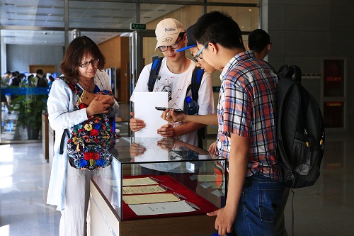 南楼一层的数学馆,吸引了很多的参观者,这里有数学以及数学院的历史;这里有老一辈数学家华罗庚、关肇直、吴文俊、陈景润、冯康等老先生的足迹,更有《九章算术》等古籍,让学生和家长流连忘返。他们还饶有兴致地参观了一楼大厅两侧摆放着数学与物理、化学、天文、美学乃至音乐有关的科普展览。