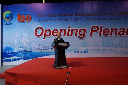2017年10月29日至11月1日,第43届IEEE工业电子学会年会(IECON 2017)在北京国家会议中心召开。本次会议由中国科学院数学与系统科学研究院承办,北京交通大学、北京航空航天大学、中国航天科工集团等单位协办。IECON 2017是国际工业电子领域的奥林匹克盛会,43年历史上首次在中国大陆召开。中国大陆代表经过多次竞争,2014年首获大会承办权。数学院吕金虎研究员(IEEE Fellow)、澳大利亚皇家墨尔本理工大学副校长Xinghuo Yu教授(IEEE IES候任主席、IEEE Fellow)、加拿大工程院院士Kamal Al-Haddad教授(IEEE IES主席、IEEE Fellow)、葡萄牙Luis Gomes教授共同担任本次大会主席。