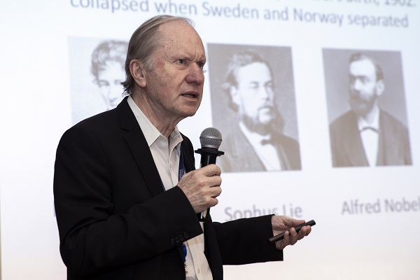 Engquist教授从“诺贝尔为什么没设数学奖”和“阿贝尔奖是如何发起的”这两个问题开始谈起。他首先介绍了科学、计算与数学之间的关系,并通过几个典型例子,如密度泛函理论和数字断层成像技术等,讨论了科学、计算与数学之间的相互作用。他认为目前“计算”已经与“实验”、“理论”并列成为科学研究的三大支柱,并且计算作为一种强有力的工具把数学与科学重新紧密结合,而后两者自1850年起逐渐分离。期间,他幽默地指出,如果诺贝尔活到现在,看到数学在人类科技发展中的重要地位和作用,一定会设立“诺贝尔数学奖”。最后,Engquist教授探讨了数据驱动的科学是否是一种新的科学范式等问题。
