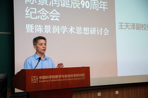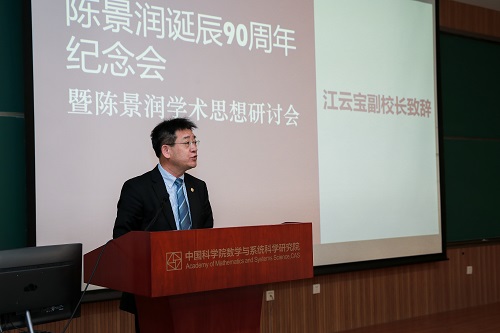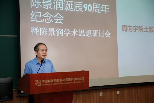 数学院副院长张平院士,厦门大学副校长江云宝,杨乐院士,马志明院士,席南华院士,周向宇院士,陈景润夫人由昆女士,华北水利水电大学副校长王天泽,数学院研究员李文林、田野等领导及嘉宾先后讲话。