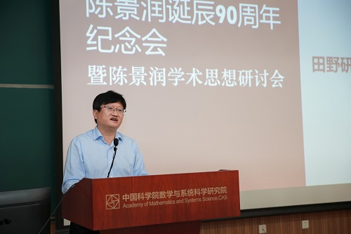 5月22日上午,陈景润先生诞辰九十周年纪念会暨陈景润学术思想研讨会在中国科学院数学与系统科学研究院(以下简称数学院)南楼举行。数学院杨乐、崔俊芝、马志明、陆汝钤、严加安、袁亚湘、周向宇、张平等院士,陈景润的夫人由昆女士及儿子陈由伟先生,厦门大学副校长江云宝,华北水利水电大学副校长王天泽,数学院党委书记兼副院长武艰、副院长黄飞敏、戴彧虹、院务专员赵延龙、数学所所长付保华等院所领导等参加了纪念会。纪念会由付保华主持。