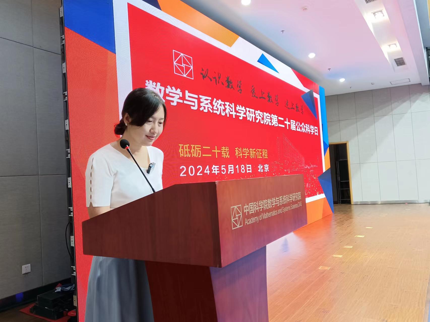 5月18日,中国科学院数学与系统科学研究院举办了以“砥砺二十载科学新征程——认识数学、爱上数学、迷上数学”为主题的“第二十届公众科学日”活动。此次活动旨在普及数学知识、展示数学魅力,激发公众对数学的兴趣和热爱。数学院院长张平院士、党委书记兼副院长武艰、党委副书记兼纪委书记王敬泽、副院长戴彧虹、周向宇院士及四所所领导等科研人员、管理人员出席活动。院务委员郑维喆研究员主持活动报告。这场关于数学科学的“盛宴”接待了近七千人次公众线下参观,并吸引了超过10万人次公众线上观看,为公众带来沉浸式的科学体验。