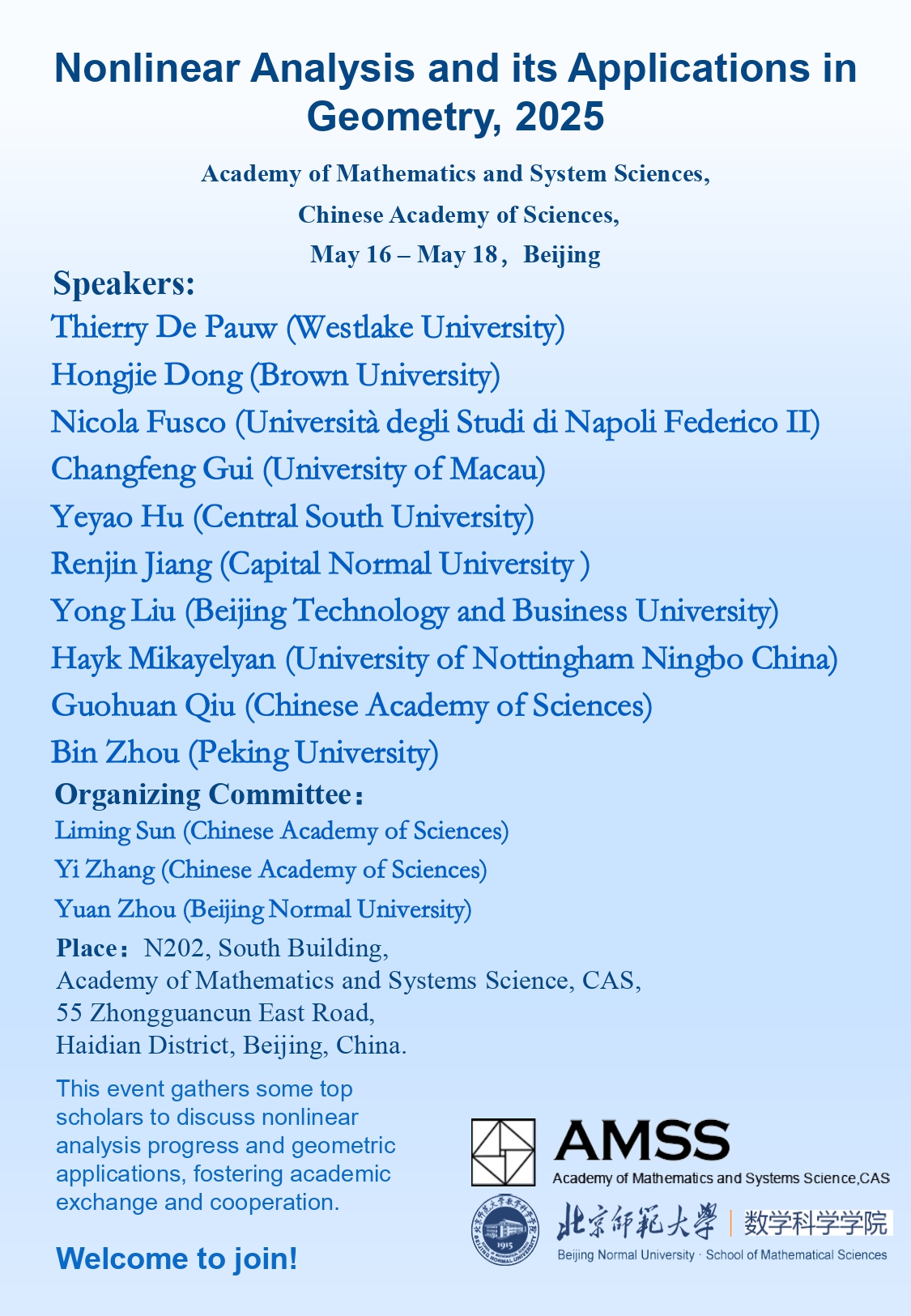 • Purpose: This event gathers some top scholars to discuss nonlinear analysis progress and geometric applications, fostering academic exchange and cooperation.