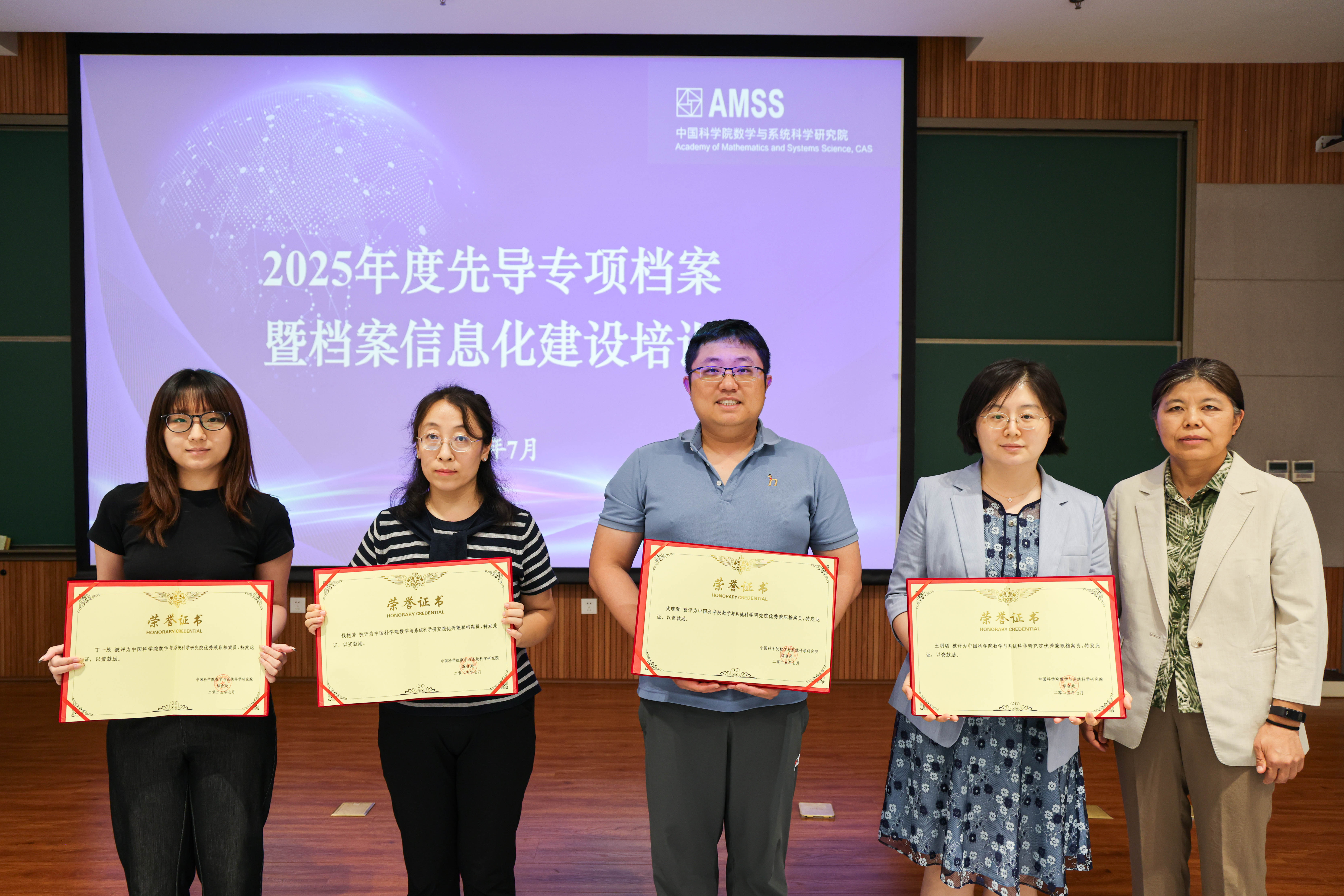 培训期间,对2024年度数学院“优秀兼职档案员”进行了表彰,并号召全体兼职档案员以先进为榜样,进一步提升档案工作质量,为数学院重大科研项目的顺利实施贡献档案力量。